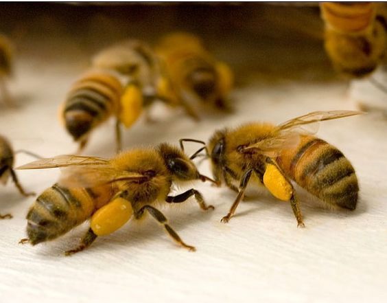 Foto abejas con cargas de polen