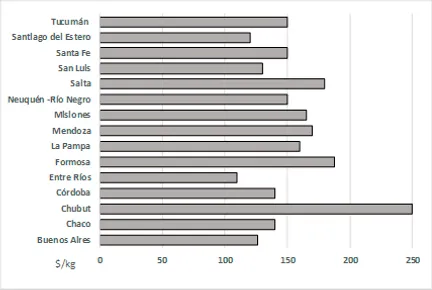 Figura 1. Miel a granel – Precios de referencia Máximos y Mínimos en las provincias de Argentina.