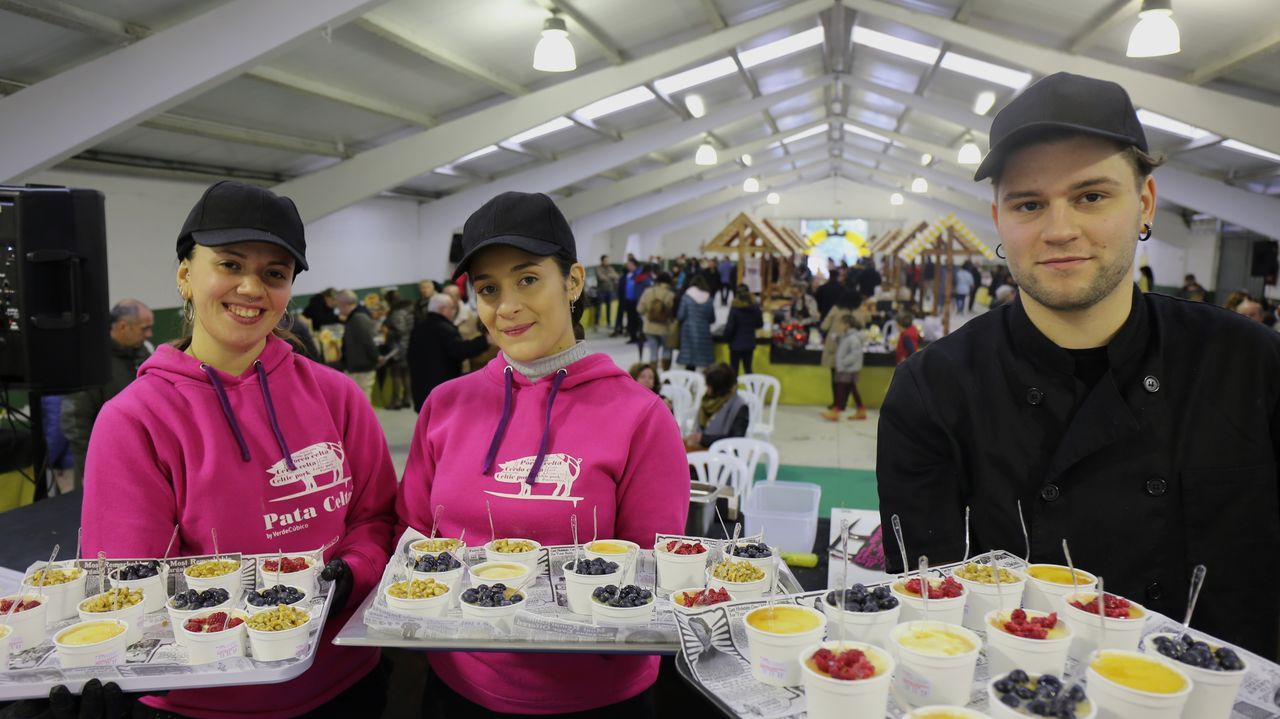 El pasado domingo Aarón Corral, Rebeca Dapena y Vanesa Cribeiro, de la mano de Pata Celta, hicieron las delicias de los asistentes a la Feira do Mel de Narón con un sorprendente showcooking en el que la miel y el Porco celta estuvo presente de principio a fin en todas las preparaciones. Comenzaron con una berenjena a la plancha con un toque de queso y miel, a continuación una «empanada de liscos» en la que también había miel como ingrediente. Continuaron ofreciendo una degustación de beicon de Porco celta con crema de queso y miel y también hamburguesa de carne de Porco celta con tomate, queso y cebolla del país y miel en lugar de kétchup para aportar el toque dulce. Todos los asistentes valoraron el maridaje que concluyó con diversas variedades de requesón de A Capela acompañado de miel. No quedó nada en los platos para satisfacción del equipo de cocina. Excelente trabajo.
