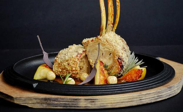 Costillar de lechal relleno, miel y costra de avellanas
