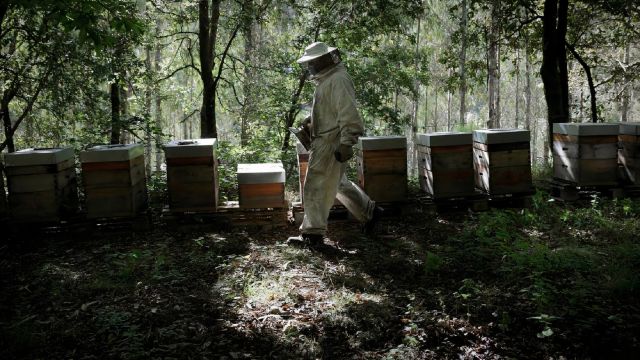 Elías Seoane trabaja con sus colmenas.