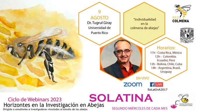 El 9 de Agosto, el invitado a los webinars de Solatina 2023 es el Dr. Tugrul Giray de la . Hablará sobre la individualidad de la colmena de abejas